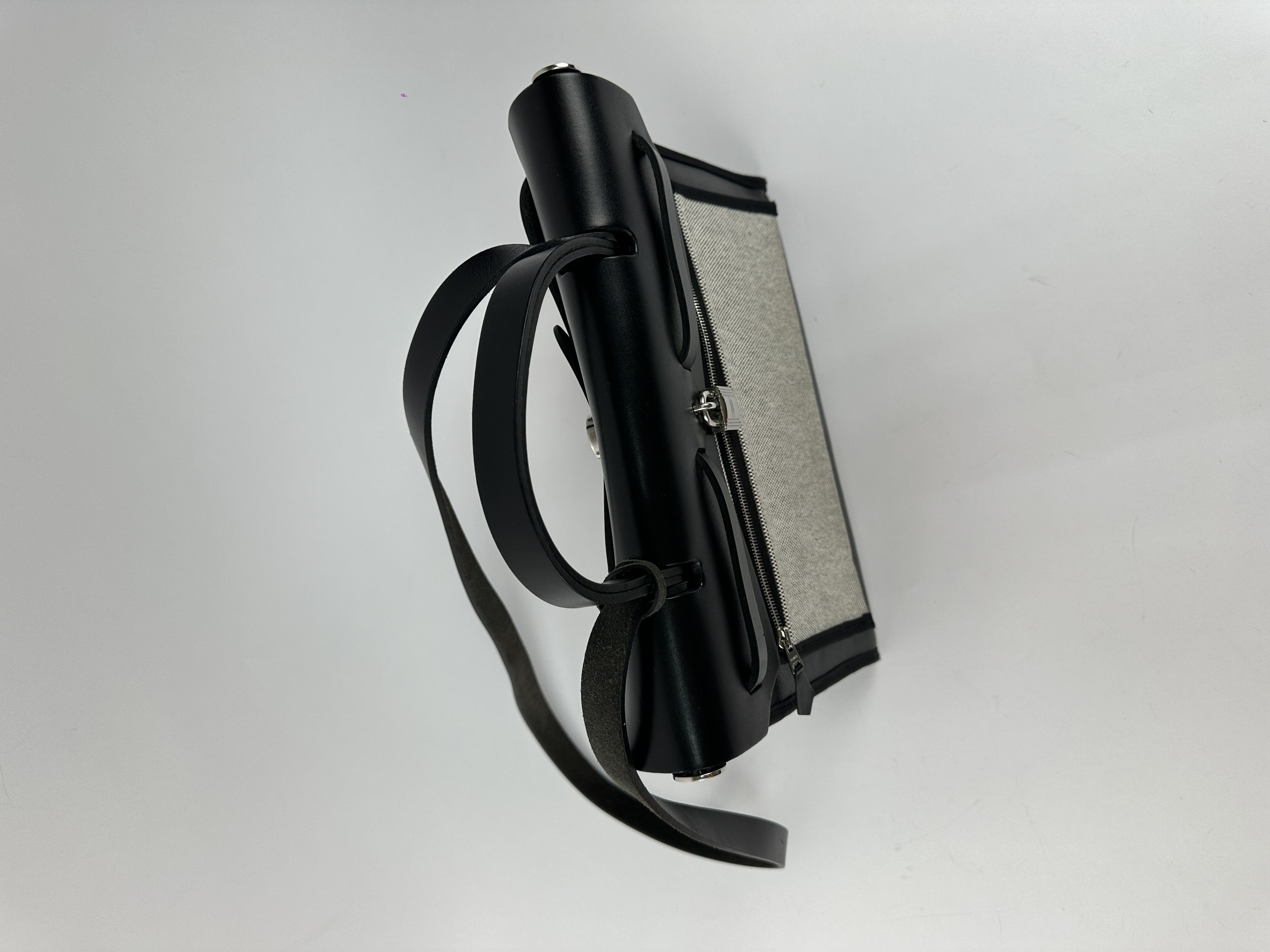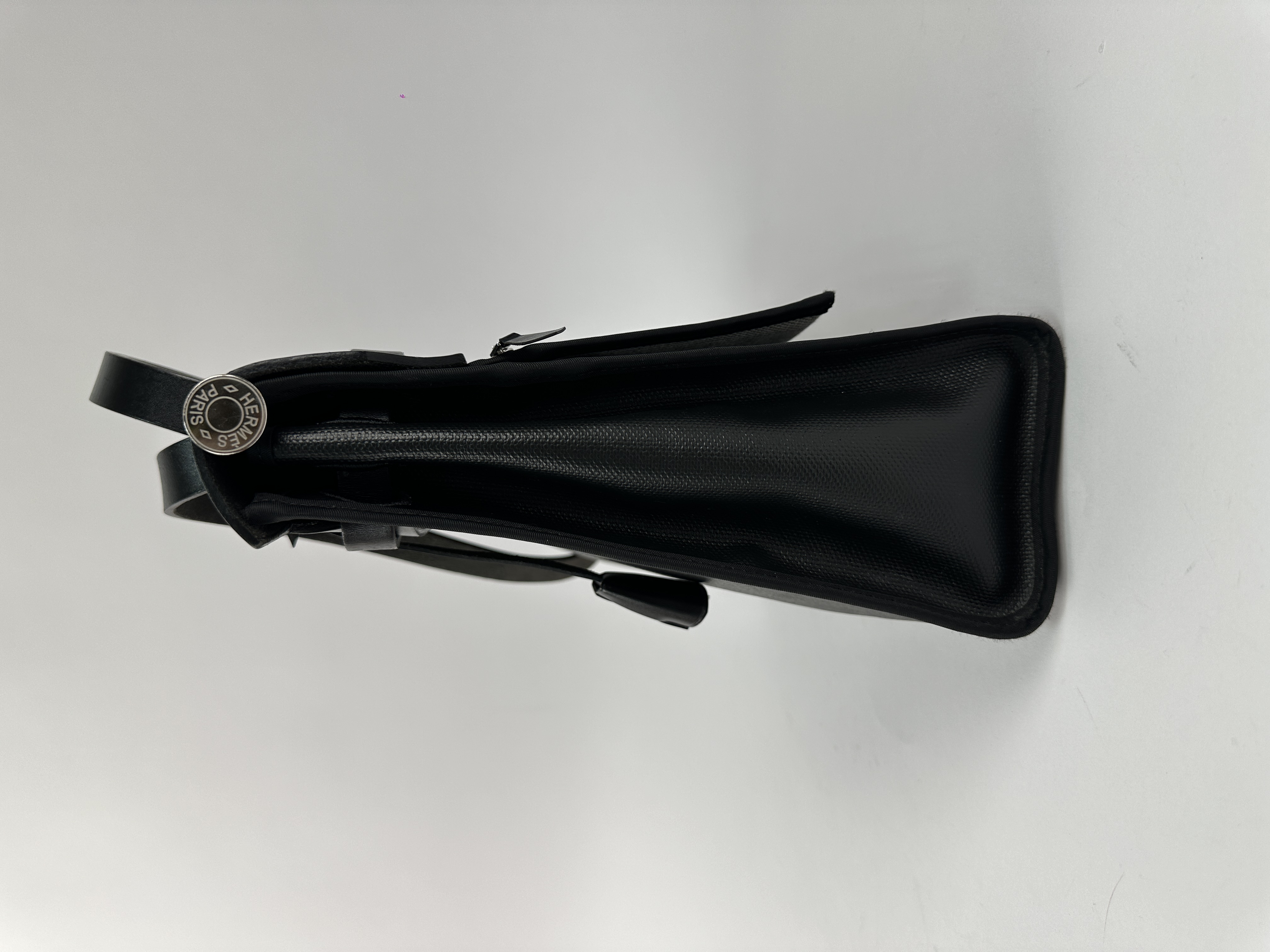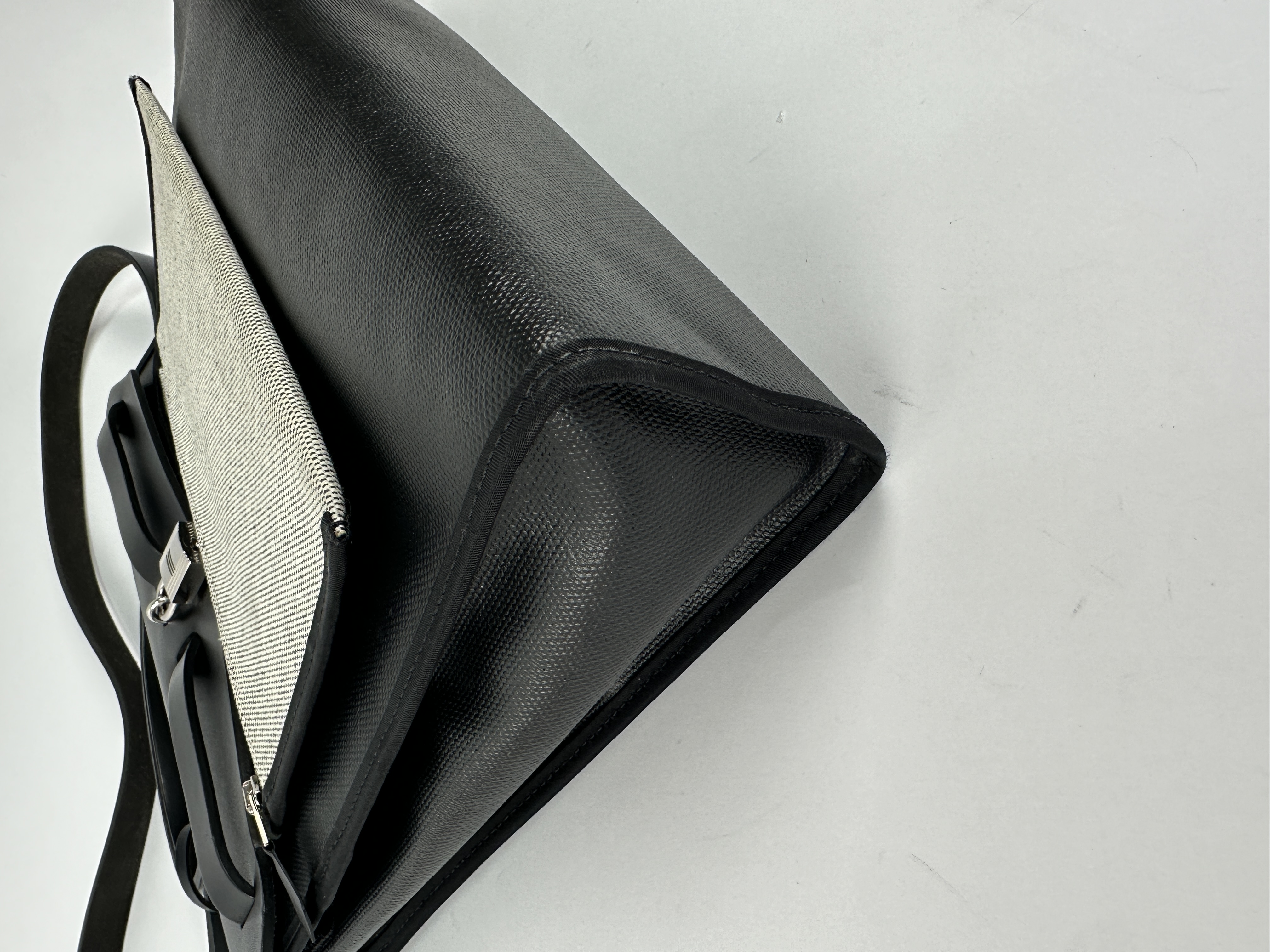 Сумка Hermes Herbag 31 в классическом черном цвете (Noir) с серебристой фурнитурой. Корпус сумки выполнен из прочного износостойкого текстиля, а верхний клапан, ручка и ремни - из гладкой воловьей кожи. Уникальность Herbag заключается в её модульности-кожаный верх можно полностью отстегнуть от текстильного корпуса, что позволяет менять «сменные» корпуса или стирать их