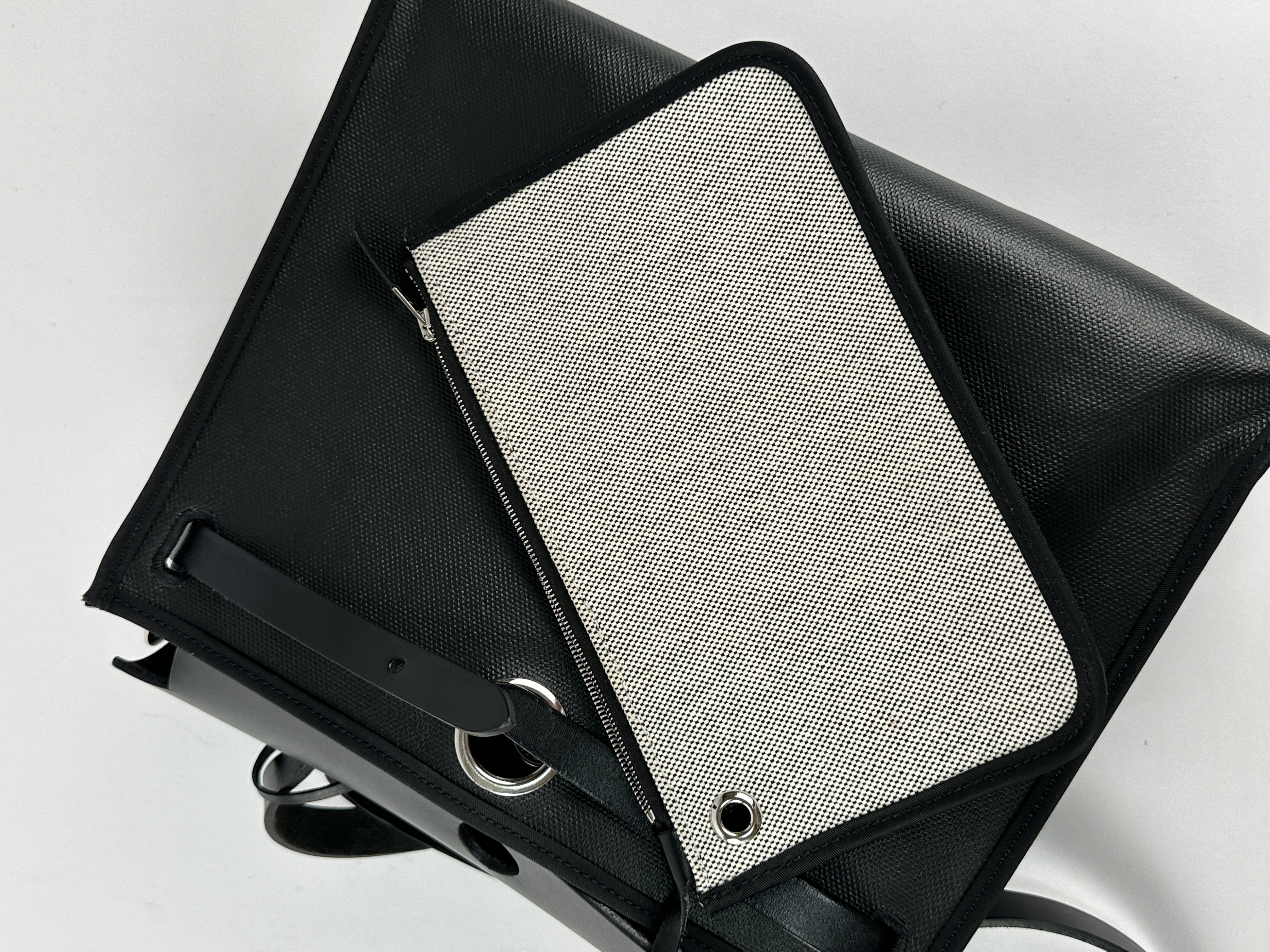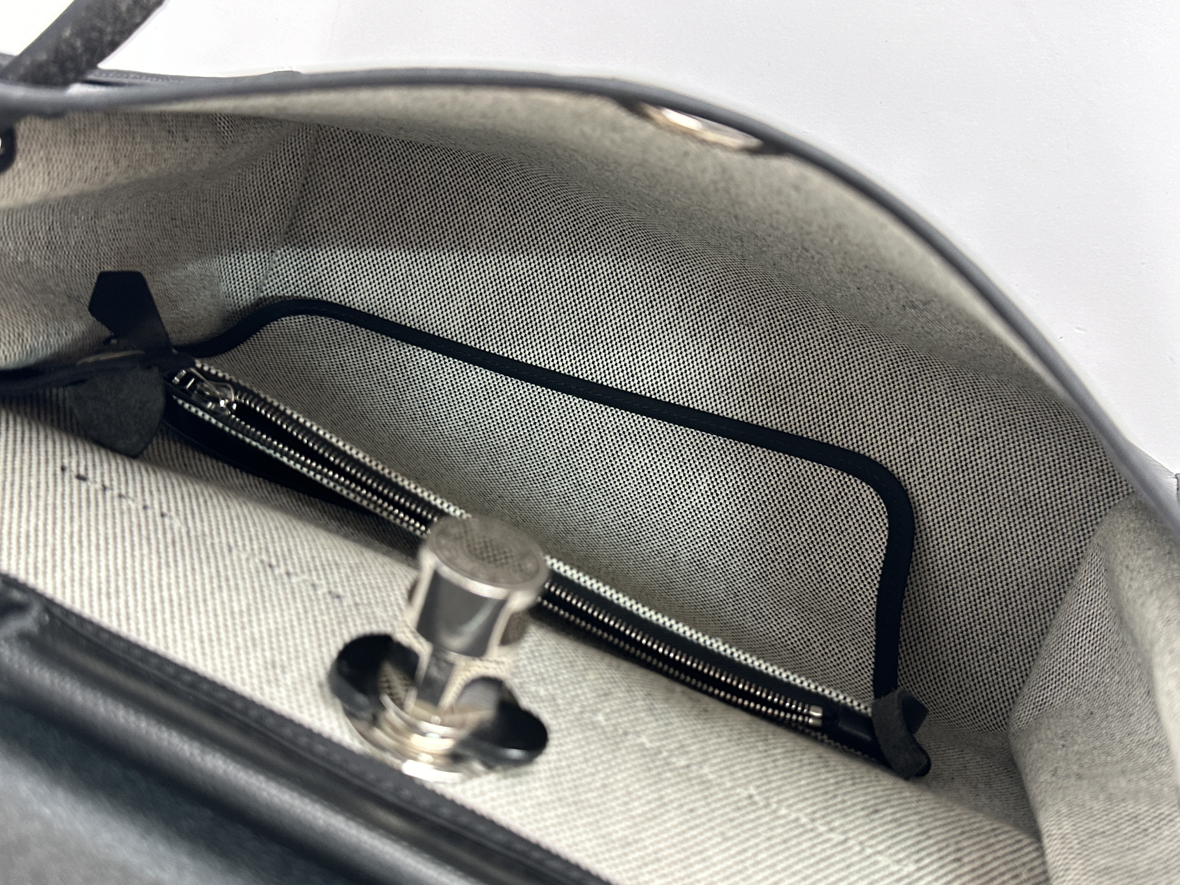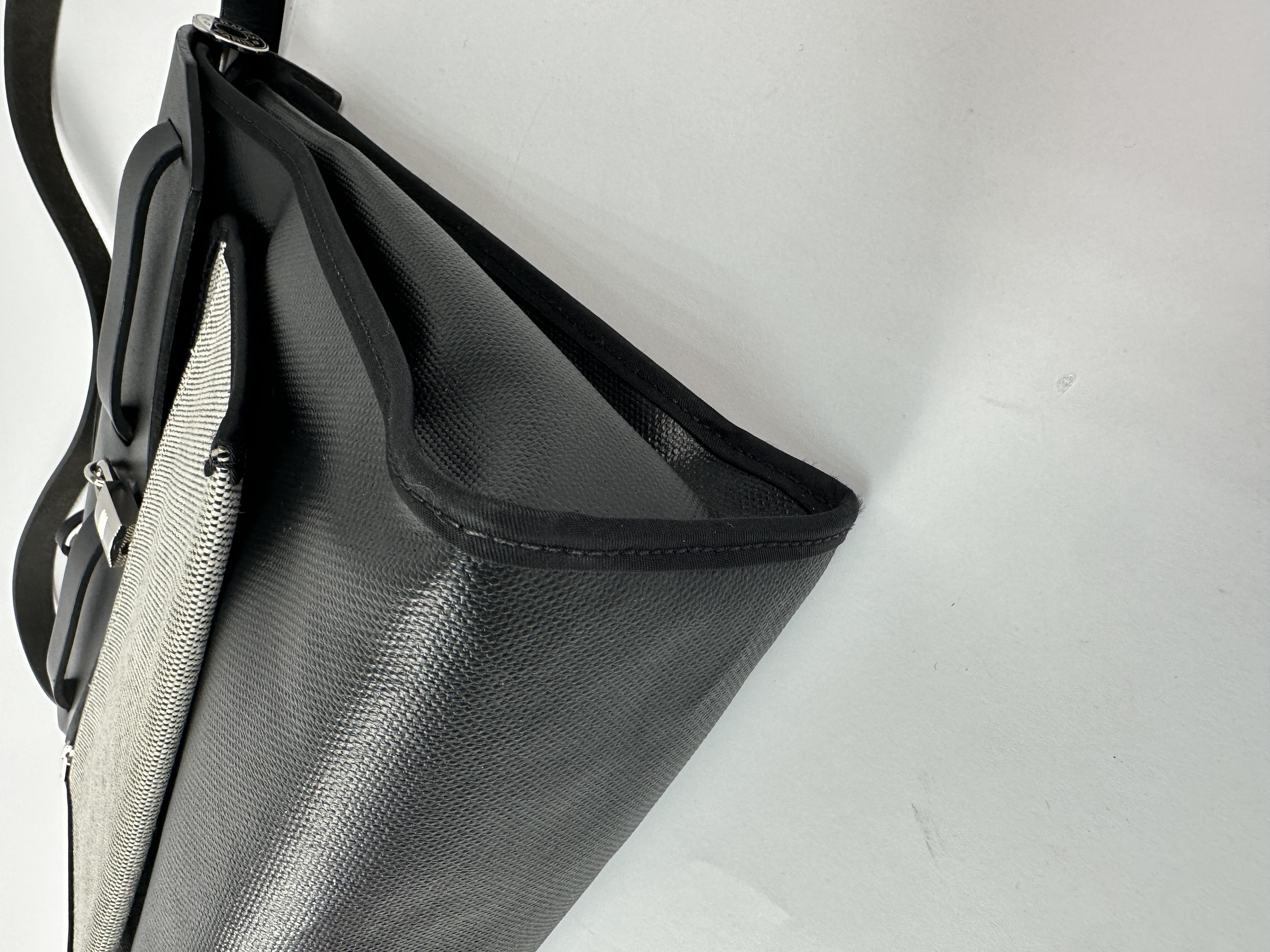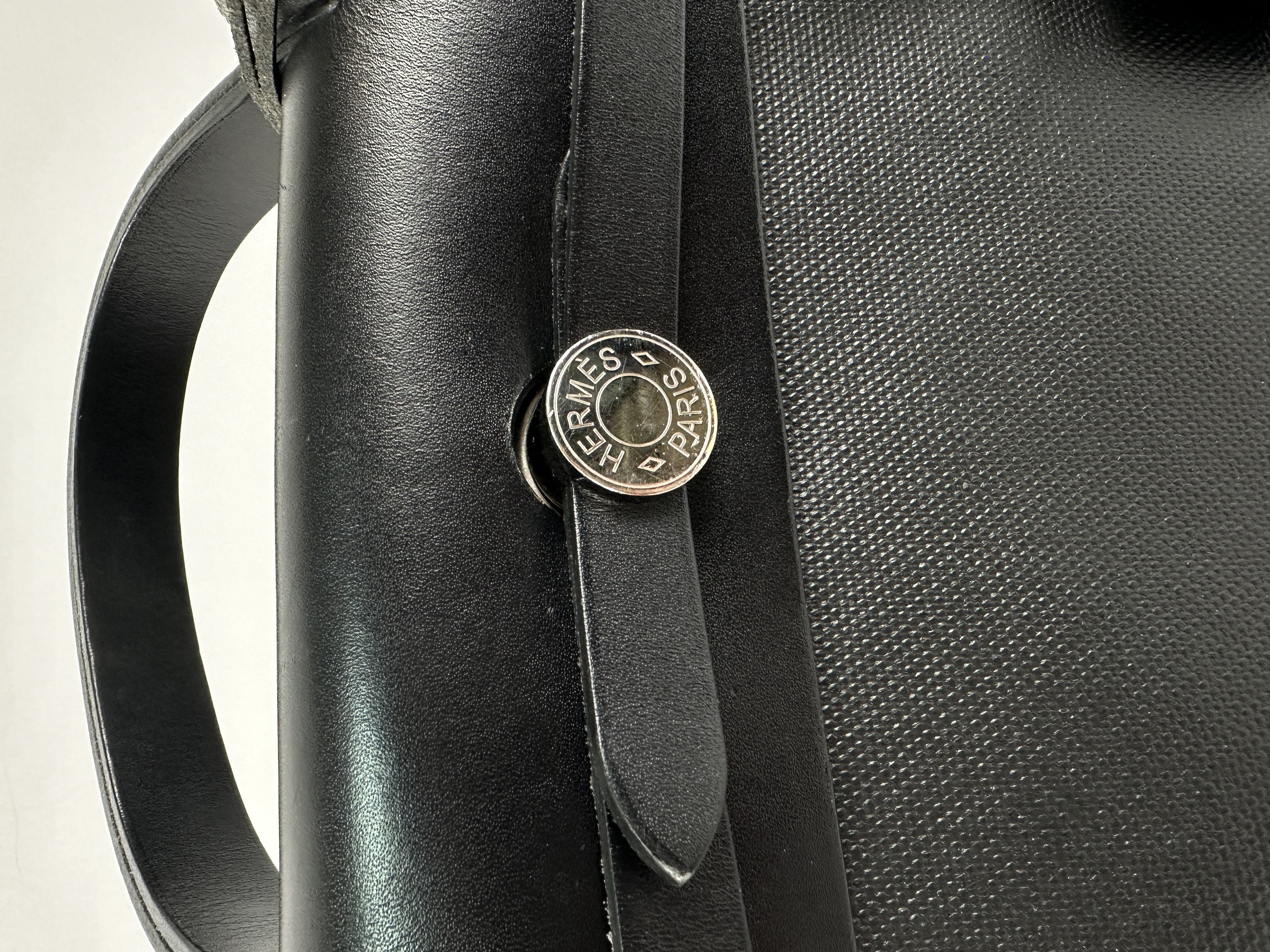 Сумка Hermes Herbag 31 в классическом черном цвете (Noir) с серебристой фурнитурой. Корпус сумки выполнен из прочного износостойкого текстиля, а верхний клапан, ручка и ремни - из гладкой воловьей кожи. Уникальность Herbag заключается в её модульности-кожаный верх можно полностью отстегнуть от текстильного корпуса, что позволяет менять «сменные» корпуса или стирать их